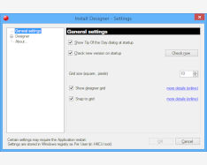 In this dialog (click Tools -> Settings.. (F11) in main menu) you can adjust most of the Install Designer properties. Certain options are common for both systems: